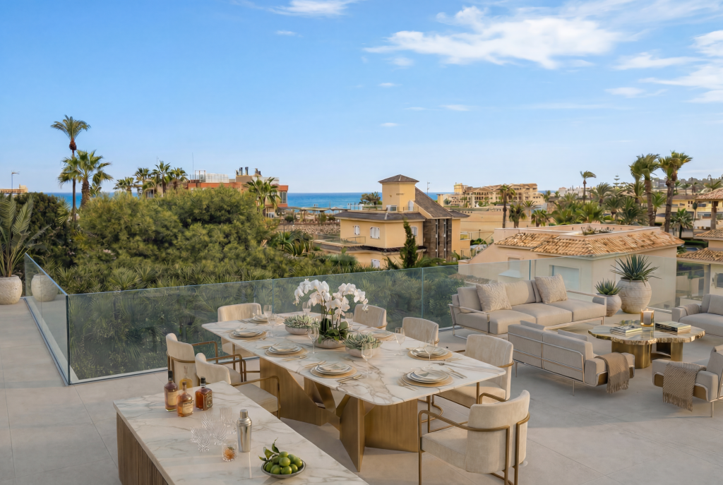Coronando la propiedad, la azotea panorámica se presenta como uno de sus espacios más extraordinarios: un gran rooftop chill-out con vistas al mar, preparado para incorporar jacuzzi, barra y zonas lounge, convirtiéndose en un escenario privilegiado para disfrutar del clima, la luz y las noches de la Costa Blanca en un entorno de absoluta exclusividad.